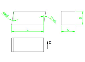 材料: ............................................LBO(LiB3O5) 定向精度: .................................................0.3 度 光洁度: .....................................................10-5 面形: ................................................Lambda/4 波前畸变: ........................................Lambda/10 倒角: ...............................................0.25x45 度 ![]() |